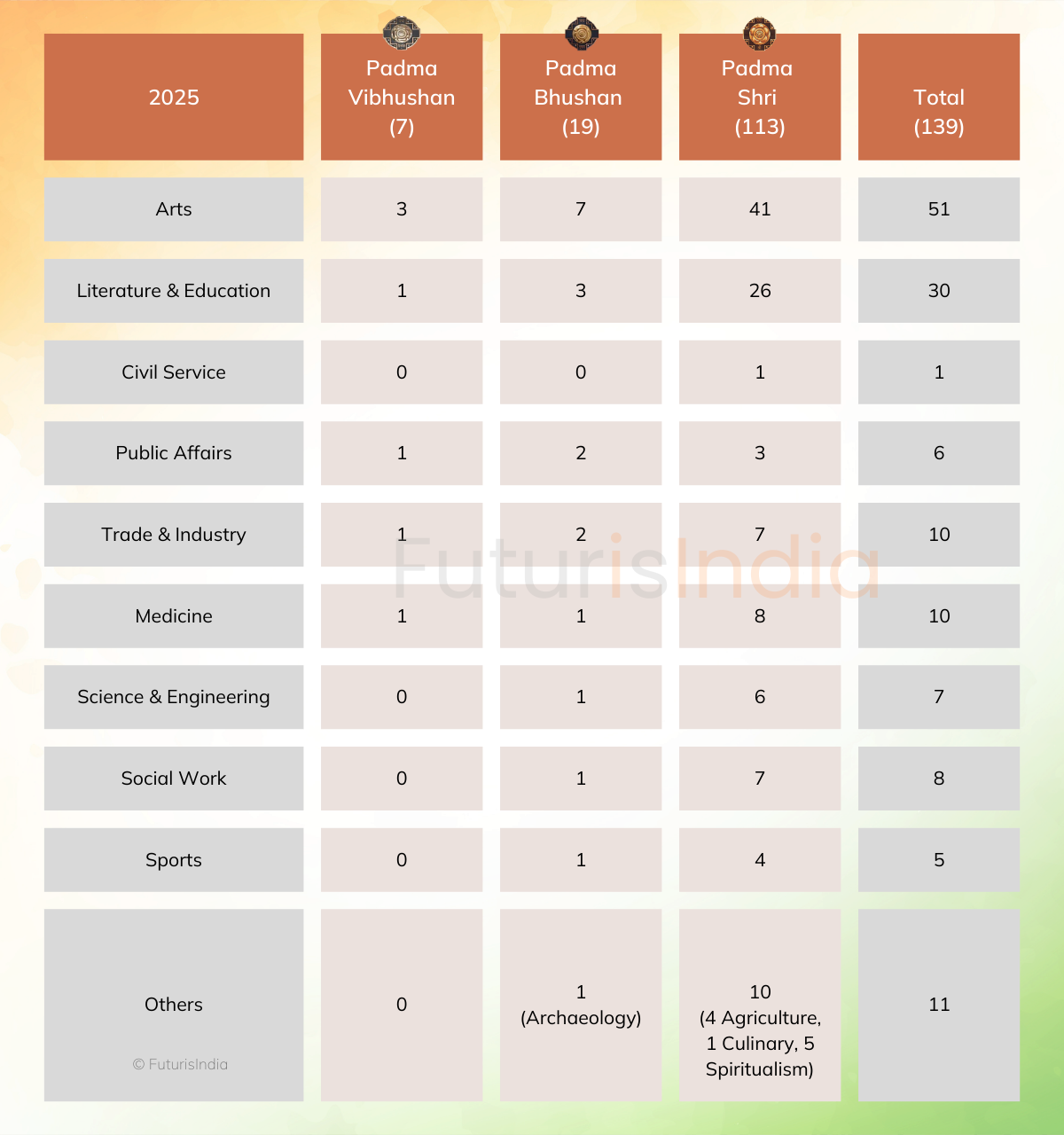 While arts and literature are integral to India, achieving Mission 2047 and transitioning into a developed nation requires a greater emphasis on sectors that drive economic growth, innovation, and technological progress. National awards are more than just symbols of excellence; they shape aspirations and set core priorities. Hence, when fields critical to India’s advancement receive minimal recognition, it sends the wrong message to the citizens.
